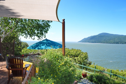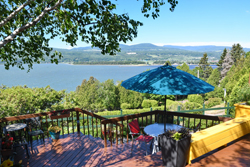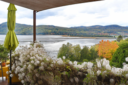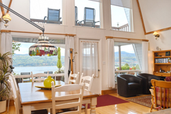Agréable salle à manger avec vue sur la baie.